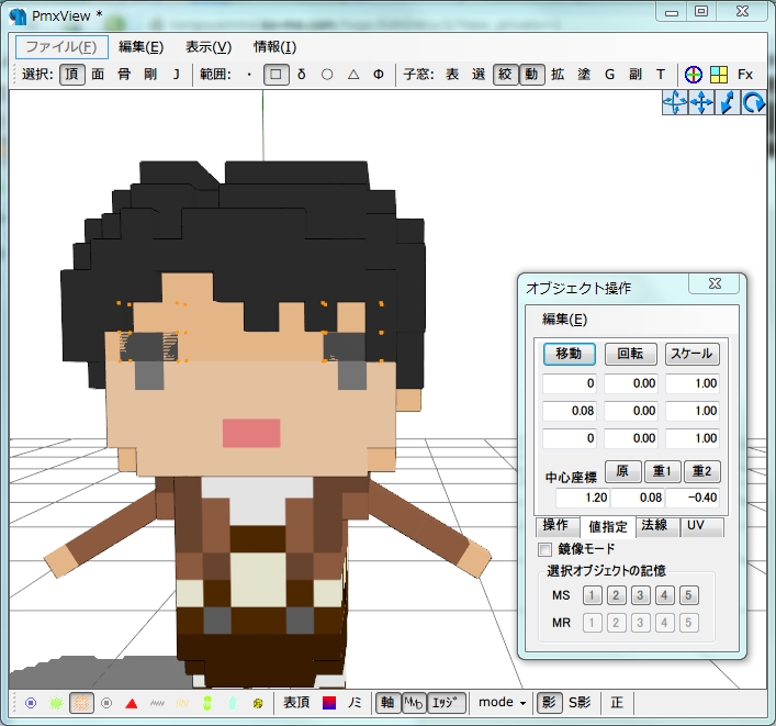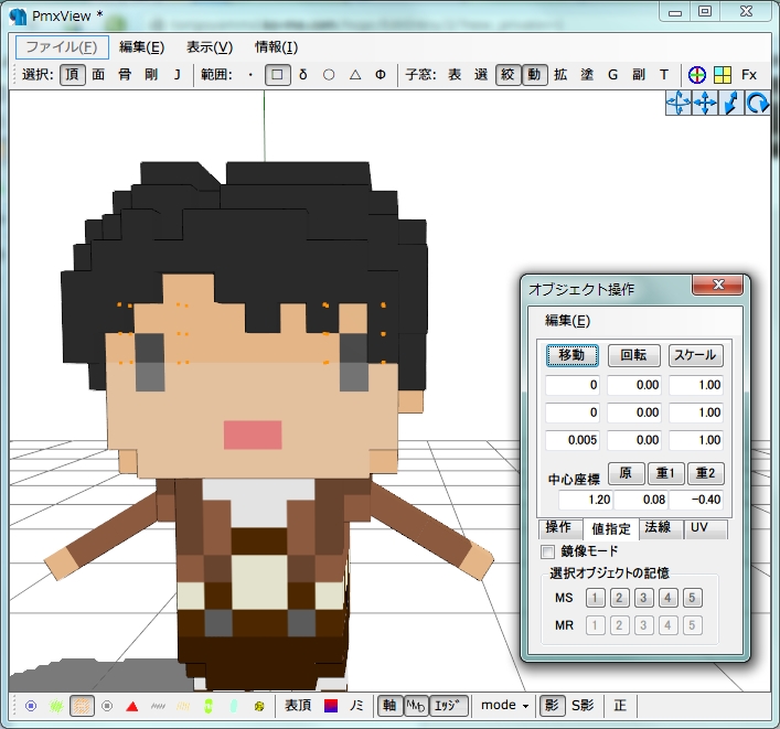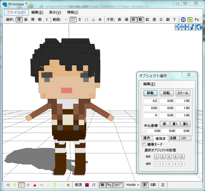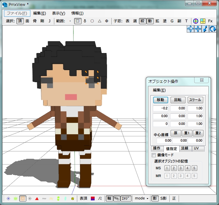 今回のねたろう式ドットリヴァイの場合はX軸-0.2(0.2)、(ちょっと特殊な場合でしたが)Y軸0.08、Z軸-0.795です。